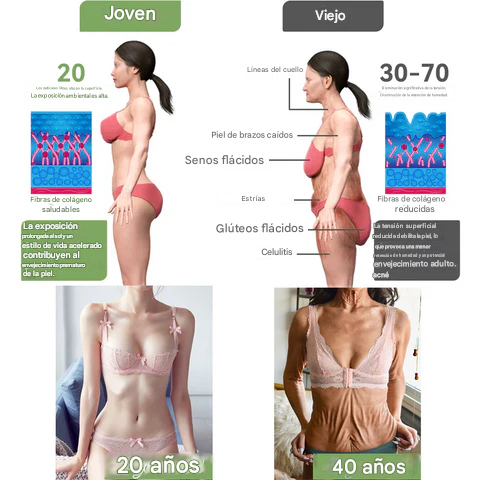 Colágeno : Como principal proteína estructural de la piel, el colágeno es esencial para mantener su elasticidad y firmeza. Con la edad, la producción de colágeno disminuye, lo que provoca flacidez cutánea.