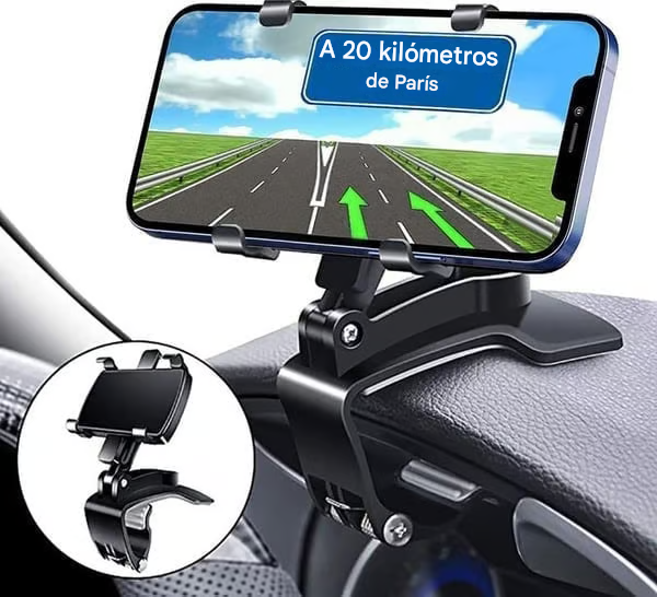 El soporte puede girar 360 grados para alternar entre modo horizontal y vertical. El brazo vertical puede girar 180 grados hacia arriba y hacia abajo, ofreciendo el mejor ángulo de visión, evitando tener que girar la cabeza para consultar el GPS o la pantalla del teléfono. Esto no afecta el campo de visión del conductor, hace que la conducción sea más segura y reduce la fatiga ocular y cervical.